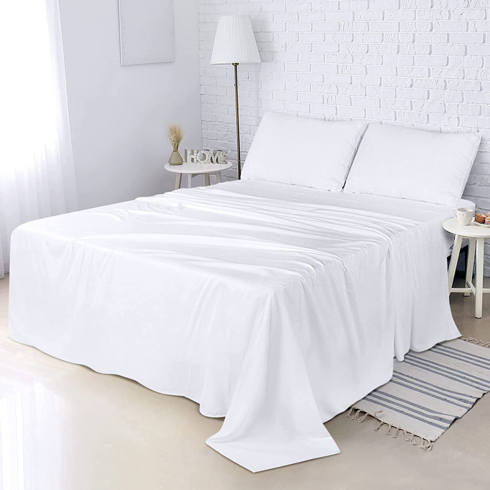 ผ้าปูที่นอนเรียบสีขาวสำหรับโรงแรม