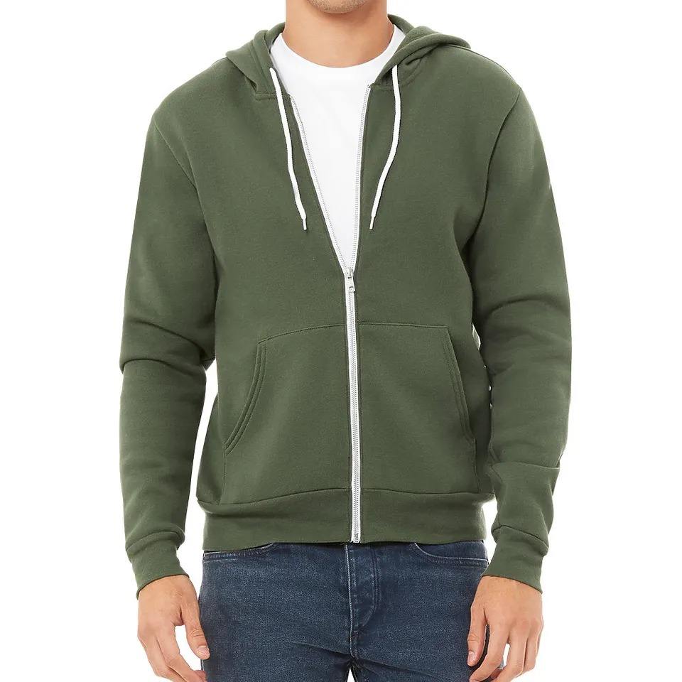 เสื้อฮู้ดสำหรับผู้ชายผ้าฟลีซแบบรูดซิปดีไซน์โลโก้แบบปักตามสั่ง