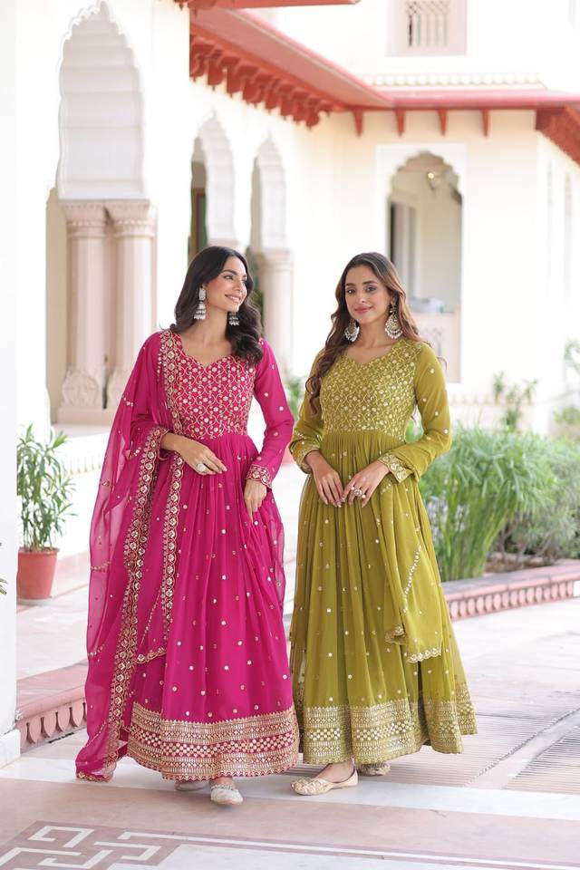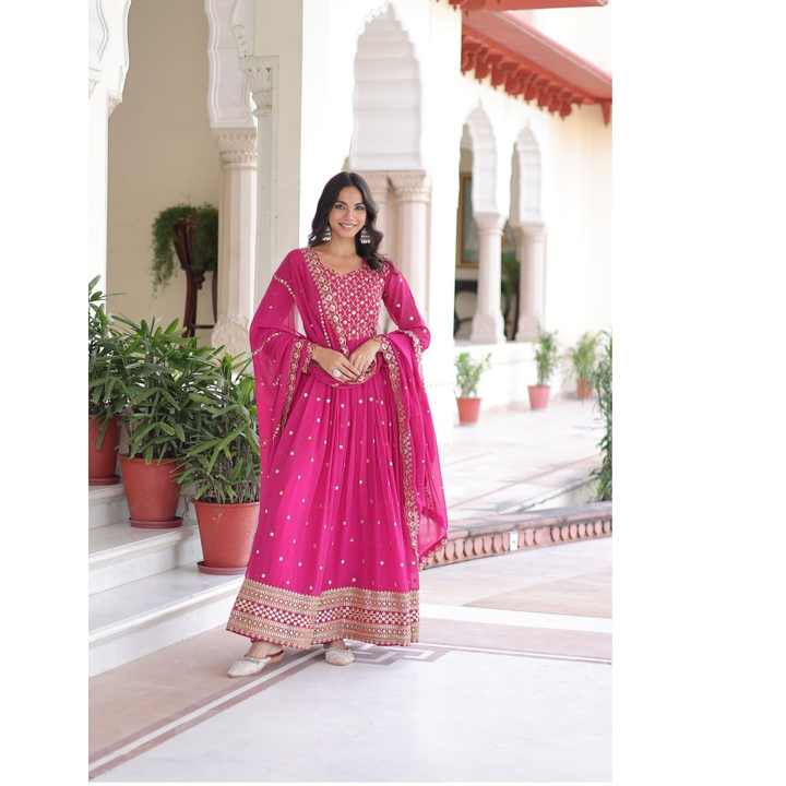 Best Quality Women Faux Georgette Gown Dupatta Set with Rich Sequins & Zari Embroidered Work for Ladies Daily Wear & Ethnic Wear