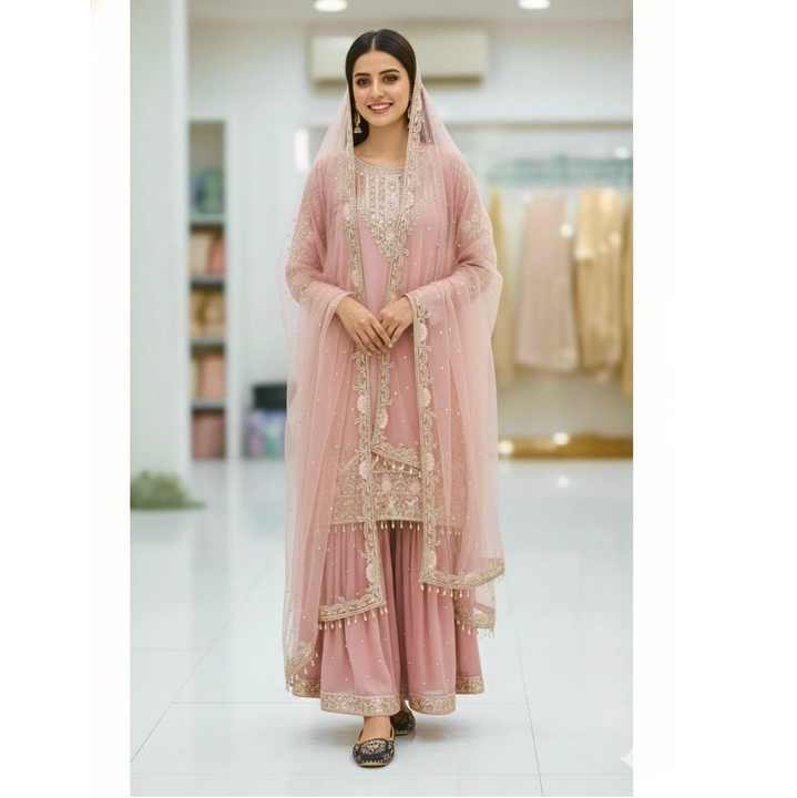 ชุดคุर्ติสผ้าจอร์เจตต์เทียมคุณภาพดีสำหรับผู้หญิง พร้อมผ้าคลุมไหล่เนื้อนุ่ม เหมาะสำหรับงานพิเศษหรืองานสังฆิต สำหรับส่งออก
