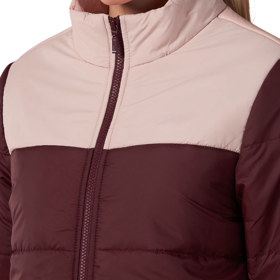 เสื้อแจ็คเก็ตพัฟเฟอร์ผู้หญิงคุณภาพดีเยี่ยมสำหรับฤดูหนาว แบบหนา บุใยสังเคราะห์ มีปกตั้ง ตัดสี กระเป๋าเย็บติด ซับในขนแกะ เหมาะสำหรับใส่กลางแจ้ง