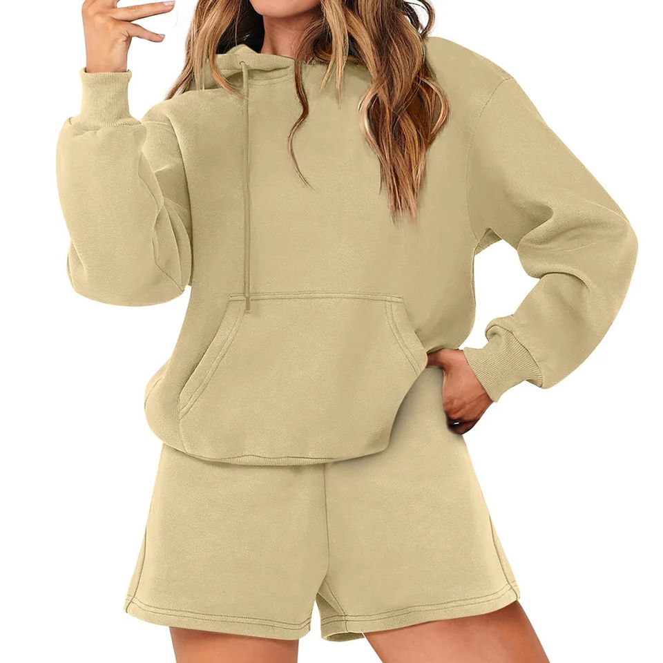 ชุดเสื้อฮู้ดและกางเกงขาสั้นผู้หญิง