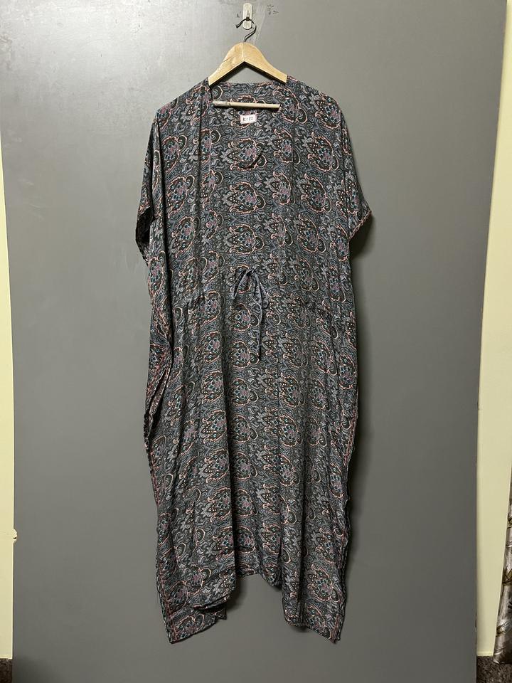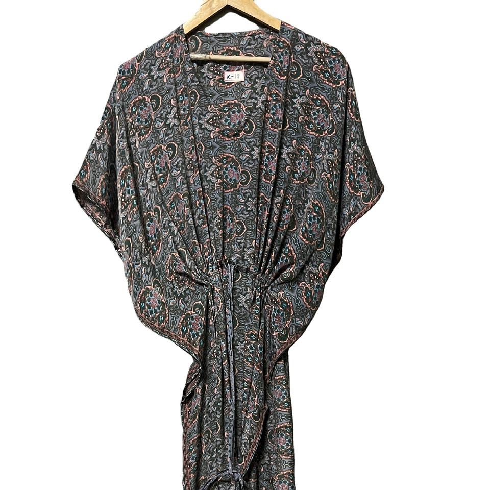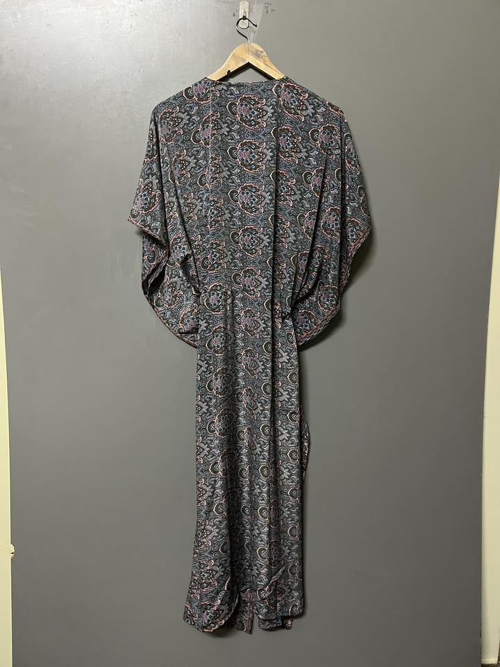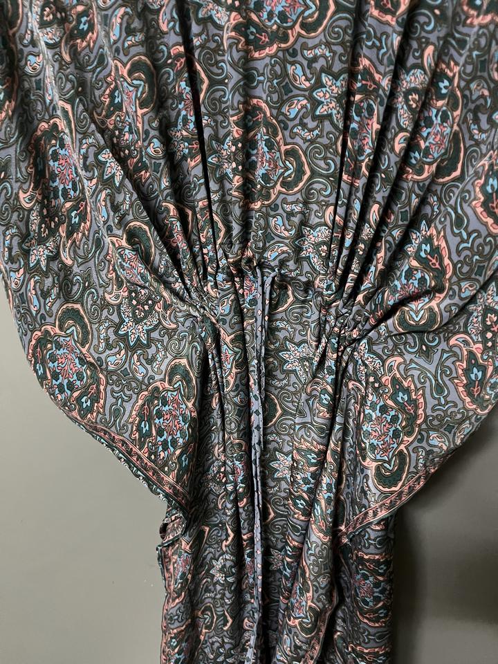 ชุดคาฟตันผ้าไหมลายดอกไม้สไตล์ลำลองสำหรับผู้หญิง คุณภาพดีเยี่ยม คอวี ยาวปานกลาง ทรงหลวม ระบายอากาศได้ดี ซักได้ สไตล์วินเทจ