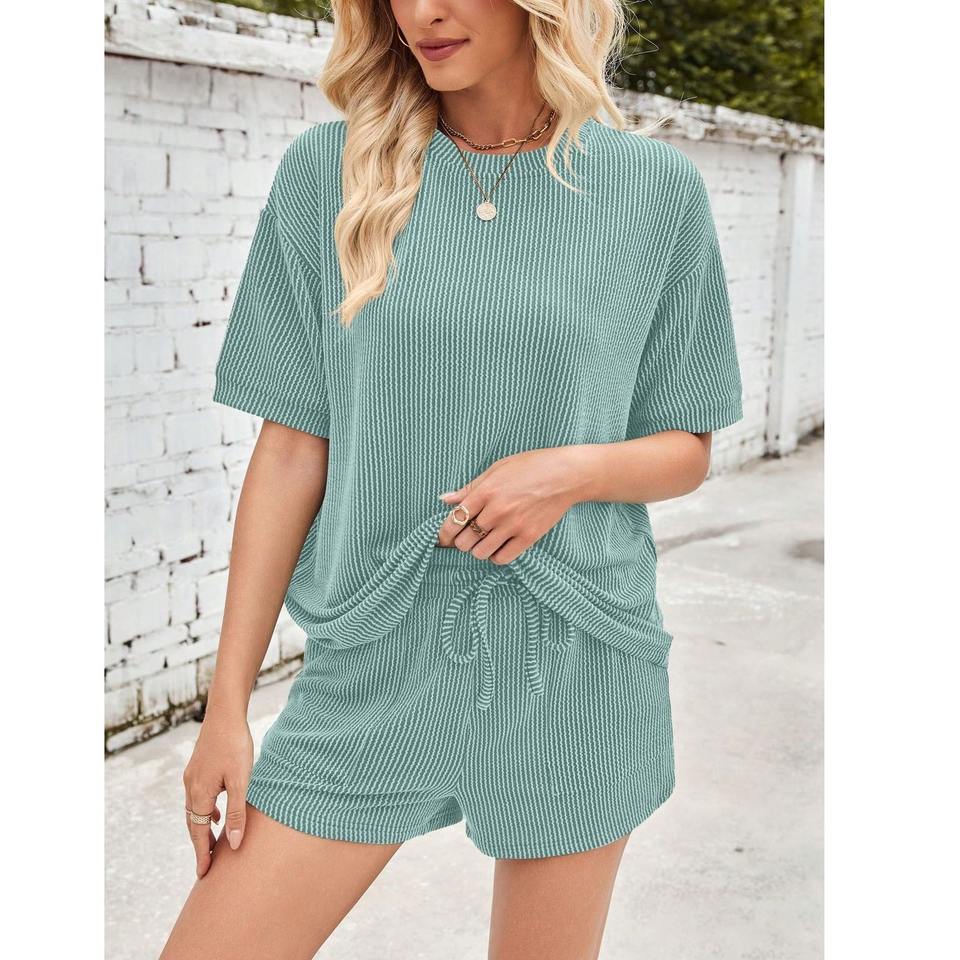 เสื้อยืดผ้าฝ้ายแขนสั้นลำลองสำหรับผู้หญิงชุดสั้นและเสื้อยืดผ้าฝ้ายแขนสั้นและชุดสั้นสำหรับผู้หญิงชุดเสื้อผ้าคู่สั้นจาก BD
