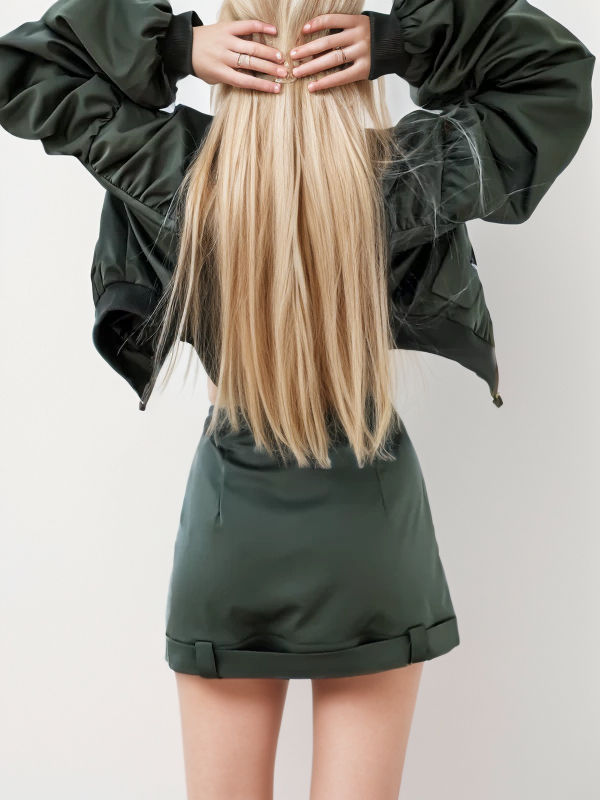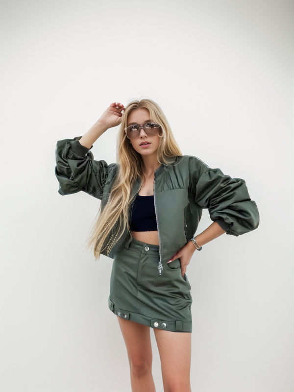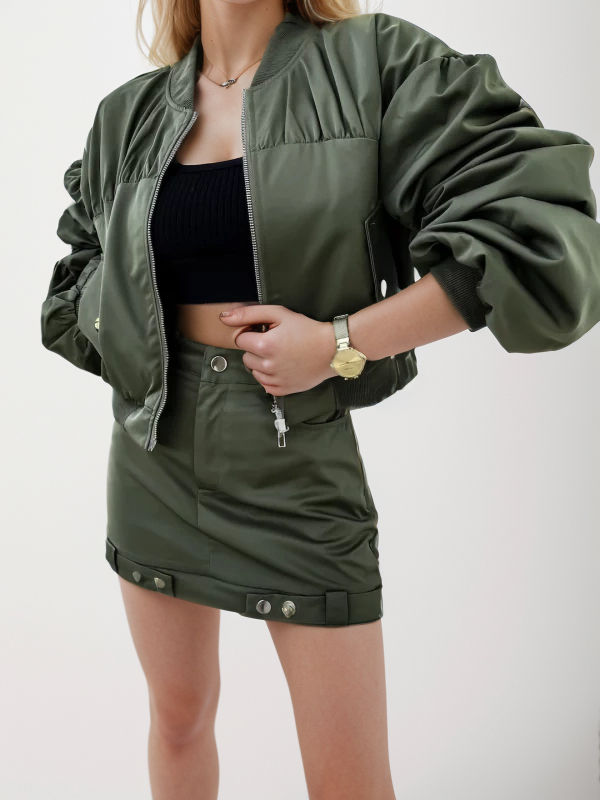 แจ็กเก็ตบอมเบอร์สีเขียวสำหรับผู้หญิงเสื้อแจ็กเก็ตบอมเบอร์สีเขียวสำหรับใส่ทำงานดีไซน์ใหม่ล่าสุด