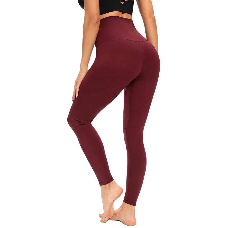 กางเกงโยคะเอวสูงคุณภาพดีสำหรับผู้หญิง สีพื้น เหมาะสำหรับออกกำลังกาย