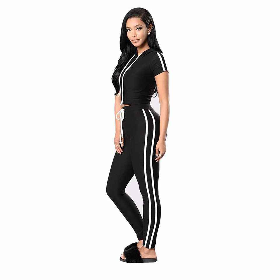 ชุดวอร์มผู้หญิงคุณภาพดีที่สุดพร้อมลายทางสีดำพร้อมโลโก้ที่กำหนดเอง
