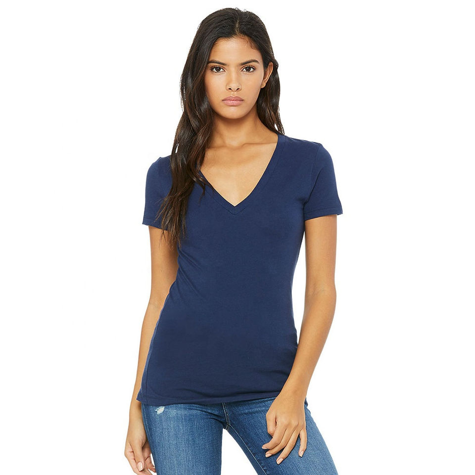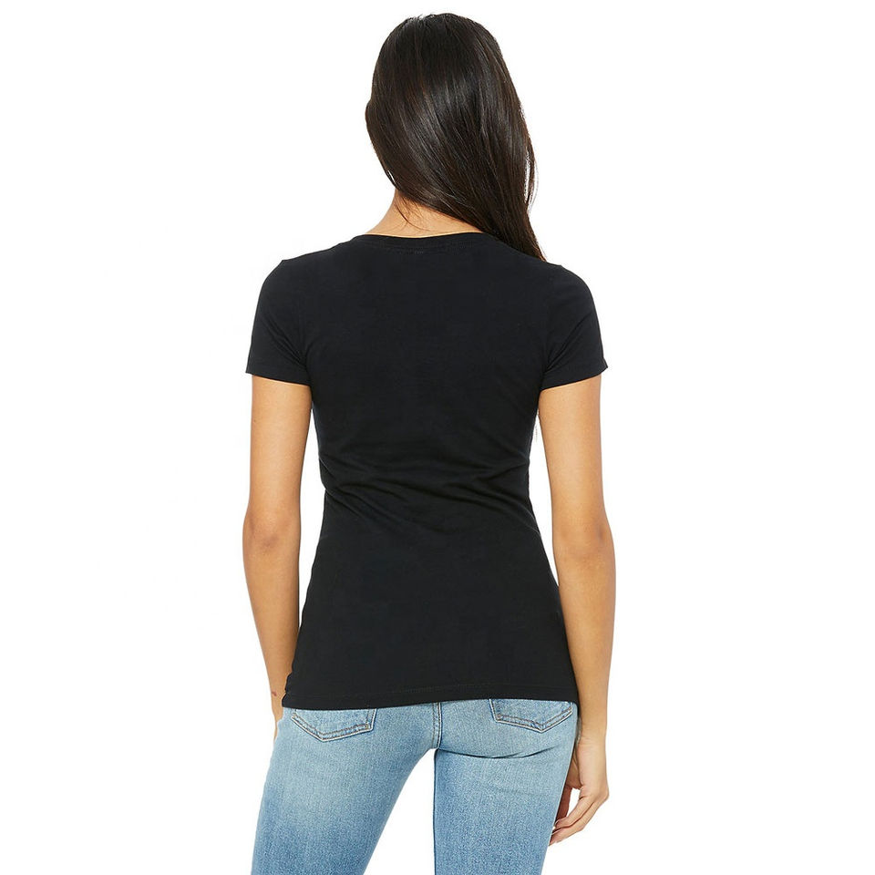 เสื้อยืดคอวีผู้หญิงคุณภาพดีที่สุด ขายส่ง พิมพ์โลโก้ตามสั่ง เสื้อยืดผ้าฝ้าย 100% เสื้อยืดสตรีทแวร์สีพื้น เสื้อยืดย้อมสีเรียบ