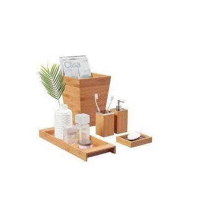 เซ็ตอุปกรณ์อาบน้ำทำจากไม้ชุดอุปกรณ์ห้องน้ำของขวัญสีเขียวทำจากไม้