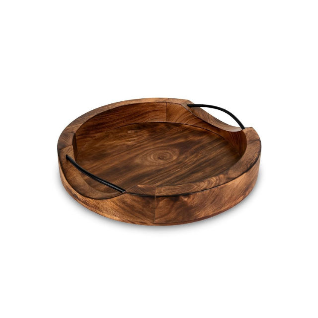 ถาดไม้ถือทรงกลมแบบโบราณกันน้ำใช้ในร่ม