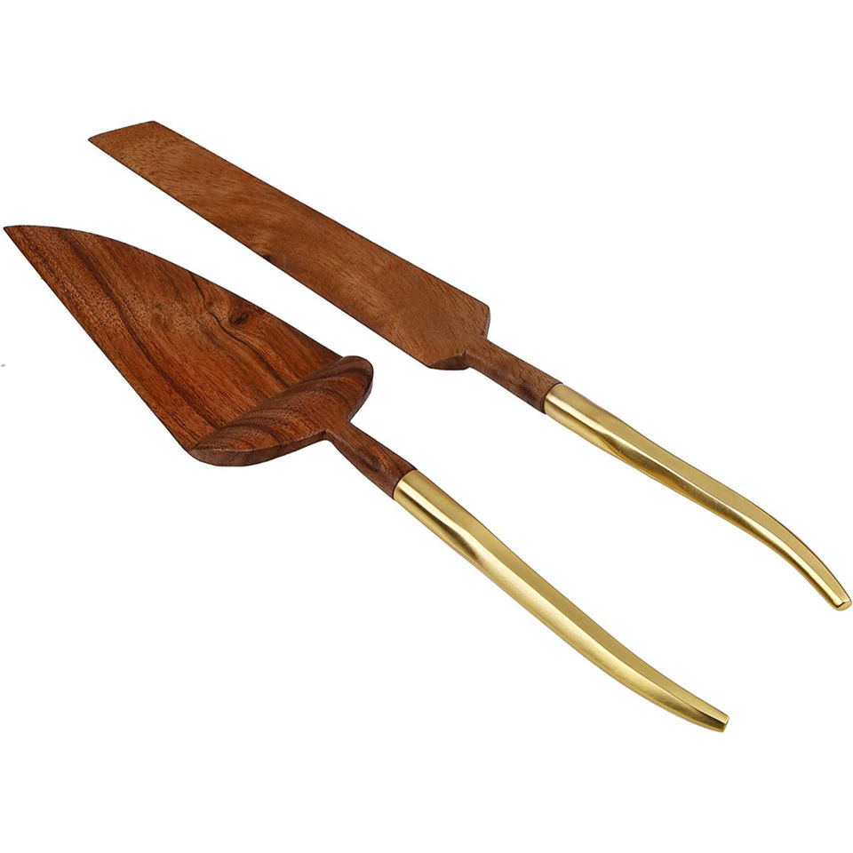 ชุดมีดเค้กชุบทองด้ามไม้ไผ่สำหรับงานแต่งงานและงานปาร์ตี้