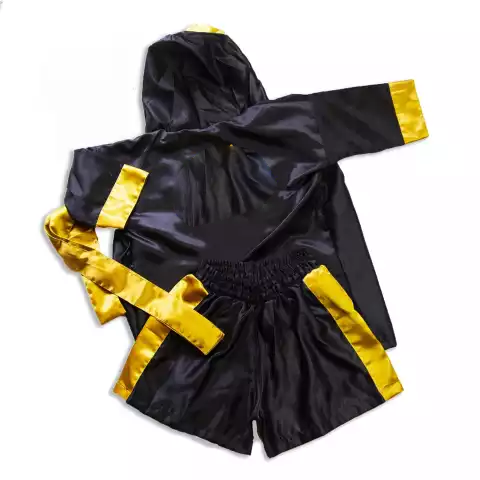 เสื้อคลุมมวยแบบมืออาชีพ,สีดำพร้อมขอบทองสำหรับนักมวย