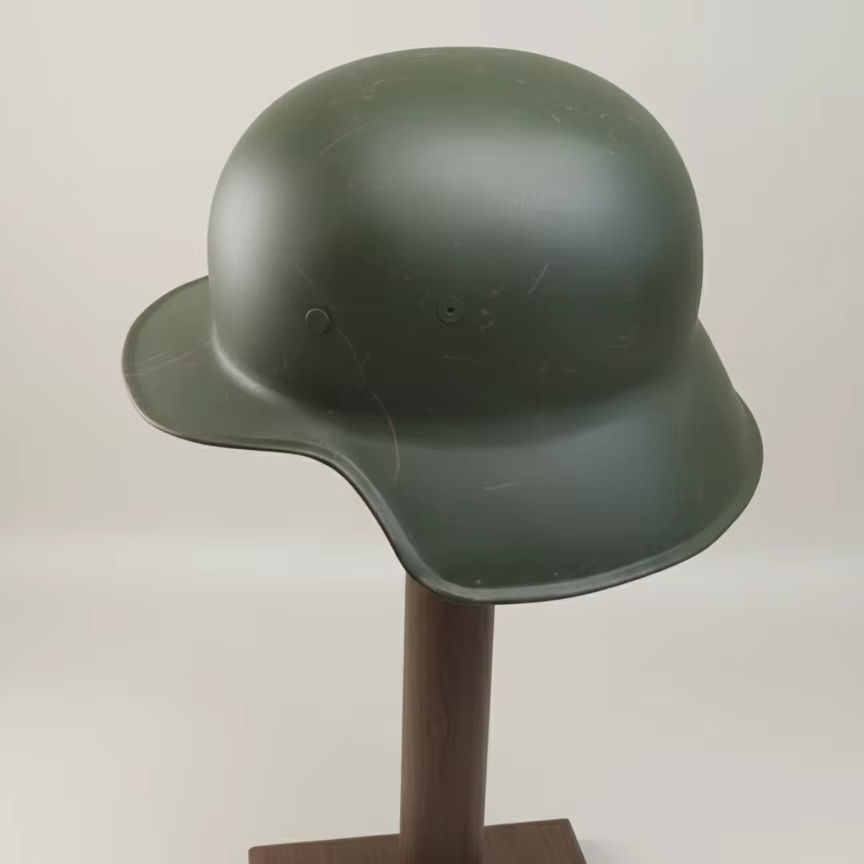หมวกเหล็กเยอรมันคุณภาพดี ผลิตจากเหล็กอ่อนขนาด 18 เกจ ผิวขัดเงาสำหรับผู้ใหญ่ ทาสีเขียวด้วยเหล็กอ่อนขนาด 18 เกจ
