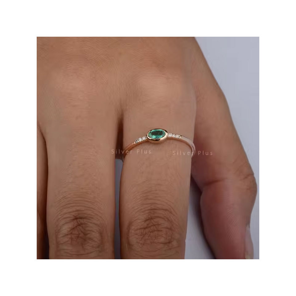 Emerald Diamond Band Ring