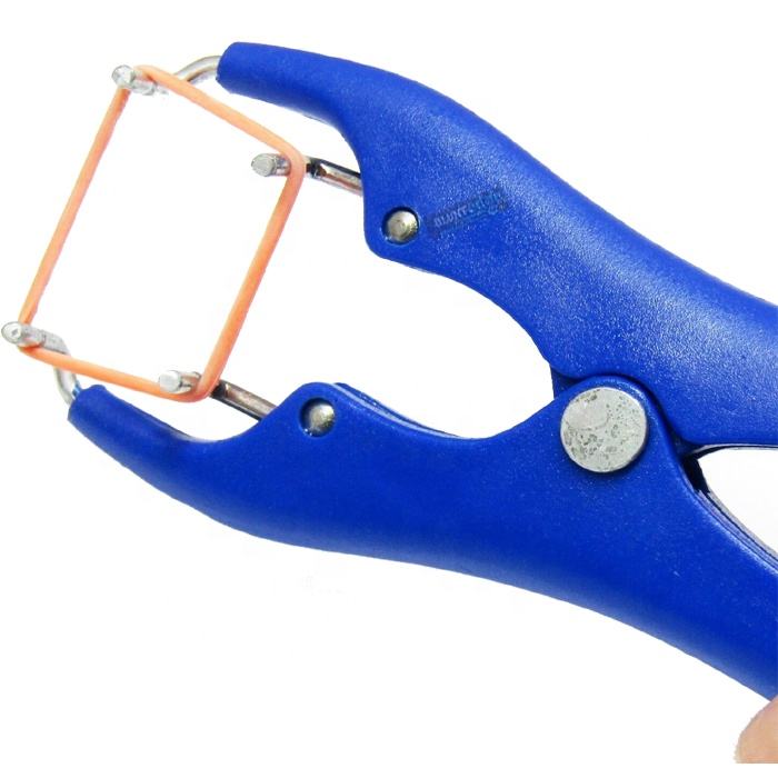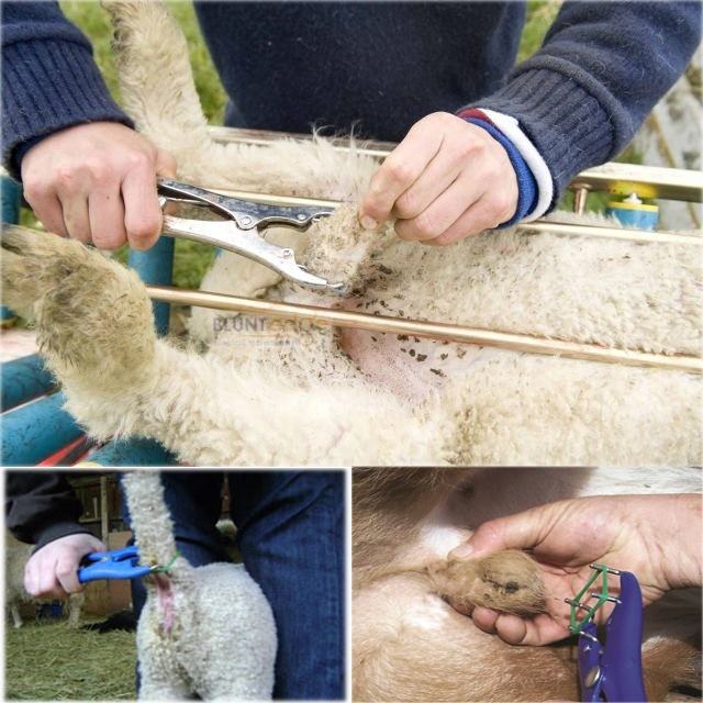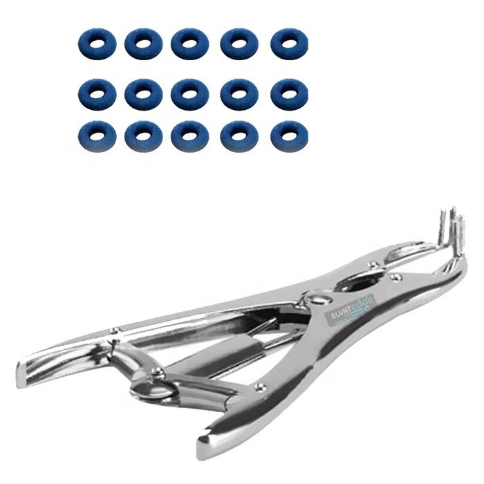 คีมตัดอสุจิอะลูมิเนียมแบบใช้ซ้ำได้ พร้อมห่วงยางสีน้ำเงิน สำหรับสัตว์ ชนิดปลายทู่ สำหรับแพะ