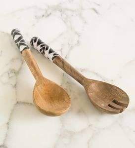 ชุดภาชนะอาหารไม้อาคาเซียมีด้ามจับพิมพ์ร้อนเครื่องมือสลัดที่โดดเด่นสำหรับเสิร์ฟช้อนในเครื่องครัว