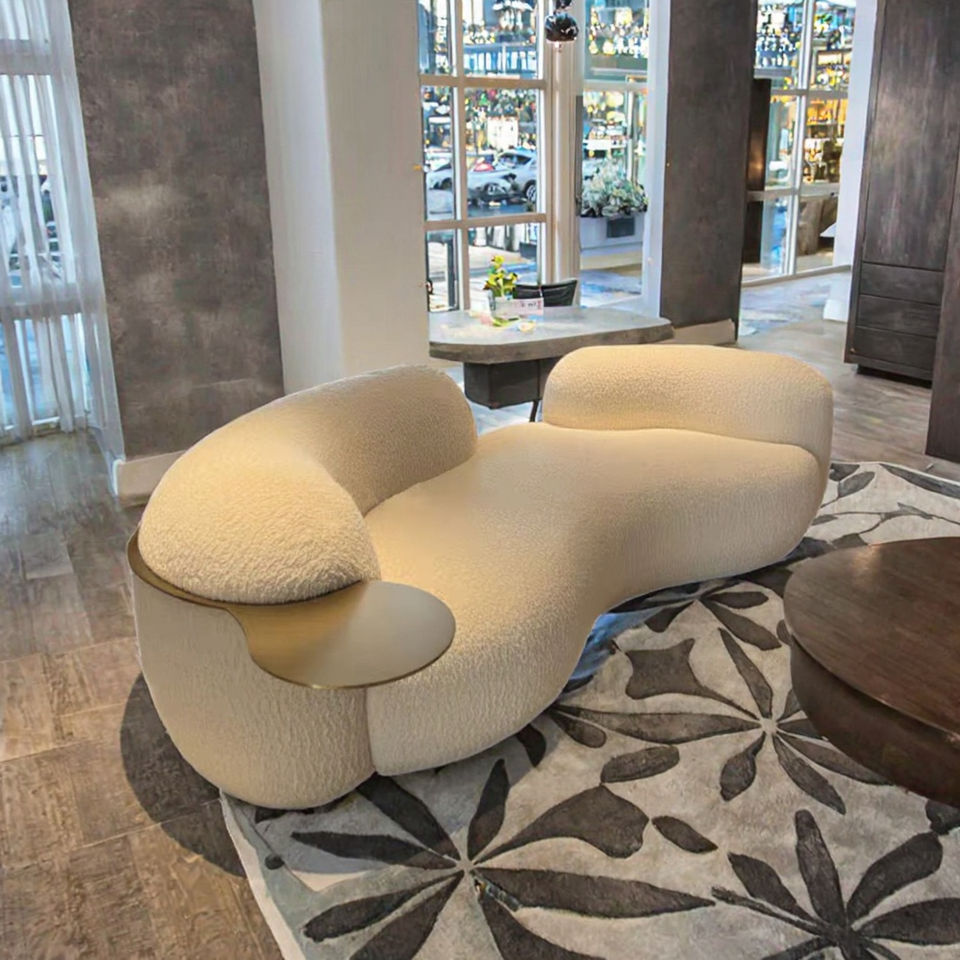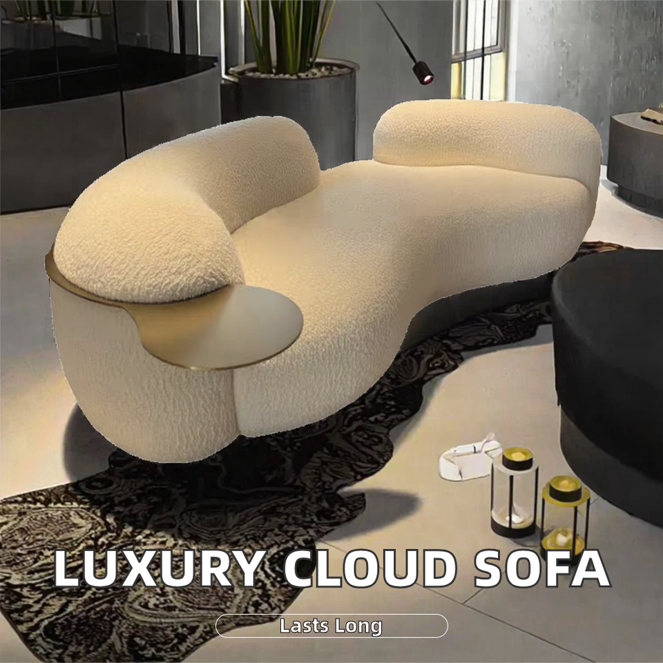 เซตโซฟารับแขก ห้องนั่งเล่น วิลล่า สุดหรู น้ำหนักเบา พร้อมวัสดุบรรจุฟองน้ำ สำหรับผู้ที่ชื่นชอบการพักผ่อน ผลิตภัณฑ์ขายดี ผ้าขนแกะเนื้อคลาวด์ แบบโค้ง ยาว