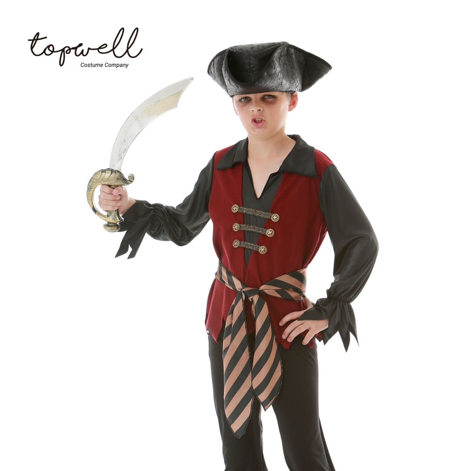 ชุดโจรสลัดเด็กชายขายดี ชุดแฟนซีสำหรับงานฮาโลวีน งานคาร์นิวัล งานเลี้ยงสวมบทบาท ผลิตจากโพลีเอสเตอร์ สำหรับส่งออก