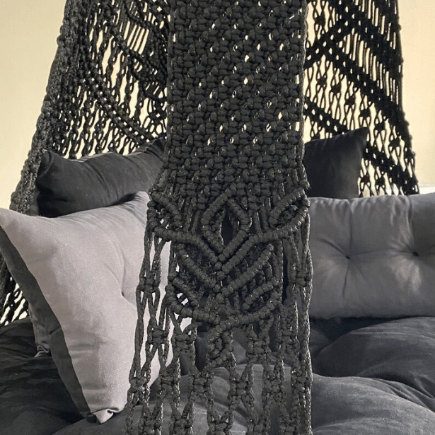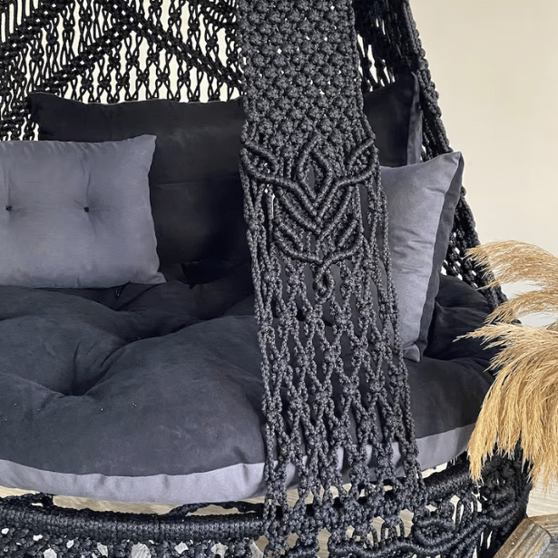 เก้าอี้โยกผ้ามาโครเม่ขนาดใหญ่ผ้าถักมือสไตล์โบฮีเมียนเป็นมิตรกับสิ่งแวดล้อมสำหรับใช้งานในร่มและกลางแจ้ง