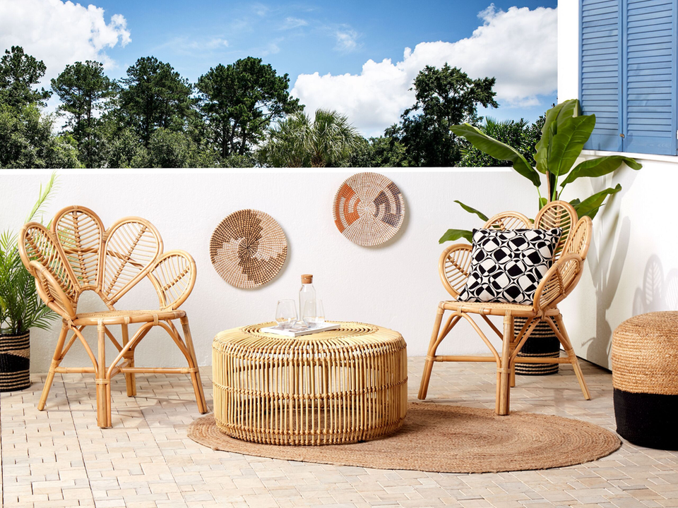 ชุดโต๊ะบิสโทรหวายสำหรับกลางแจ้งเก้าอี้และโต๊ะสไตล์ไม้ไผ่หวายสำหรับลานบ้านเฟอร์นิเจอร์สวนจากธรรมชาติ