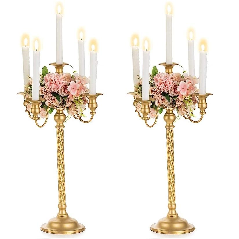 Best Sale Prices Silver Plated Large Aluminum Candelabra With 5 Arms for Wedding Event Party Tabletop Decorations