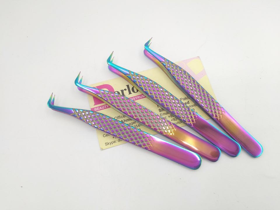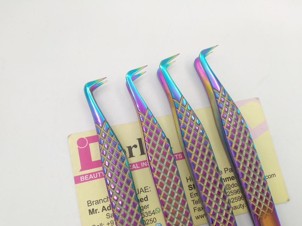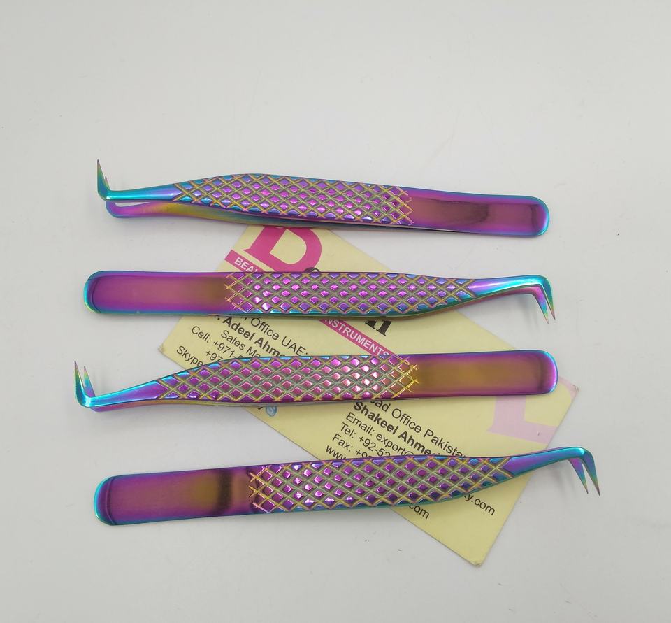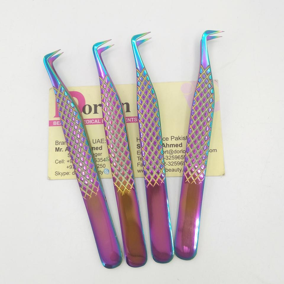 แหนบขนตาแบบหนีบติดเพชรสีรุ้งทำจากสเตนเลสสตีล90องศาสำหรับต่อขนตาเพิ่มวอลลุ่ม