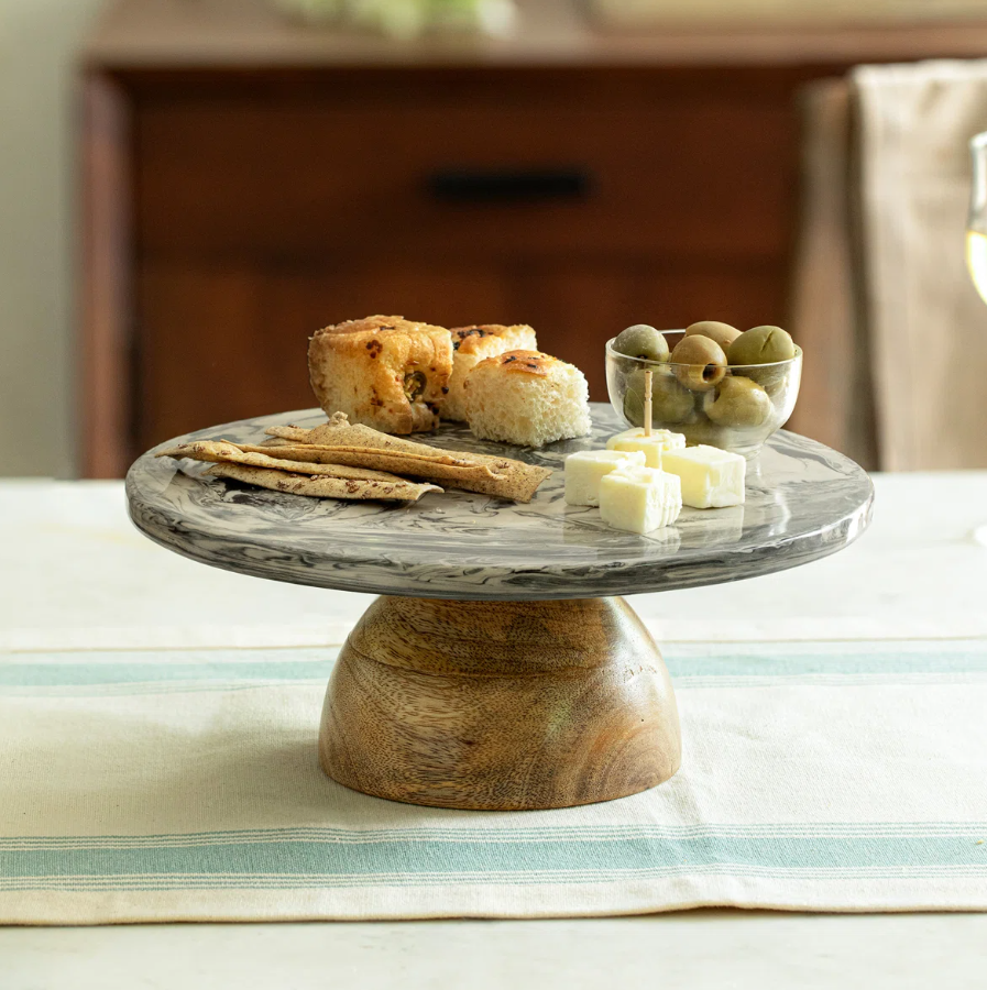 ที่วางเค้กไม้ธรรมชาติทำจากไม้หินอ่อนธรรมชาติเครื่องใช้ในครัว