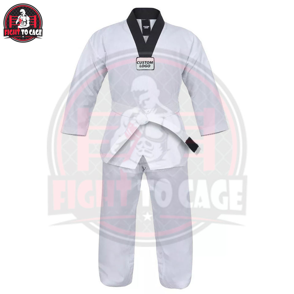 ชุดเทควันโดสีขาวคอวี TKD คุณภาพดี ลดราคาพิเศษ ป้องกันการหดตัว เหมาะสำหรับสายดำ ระดับมาสเตอร์