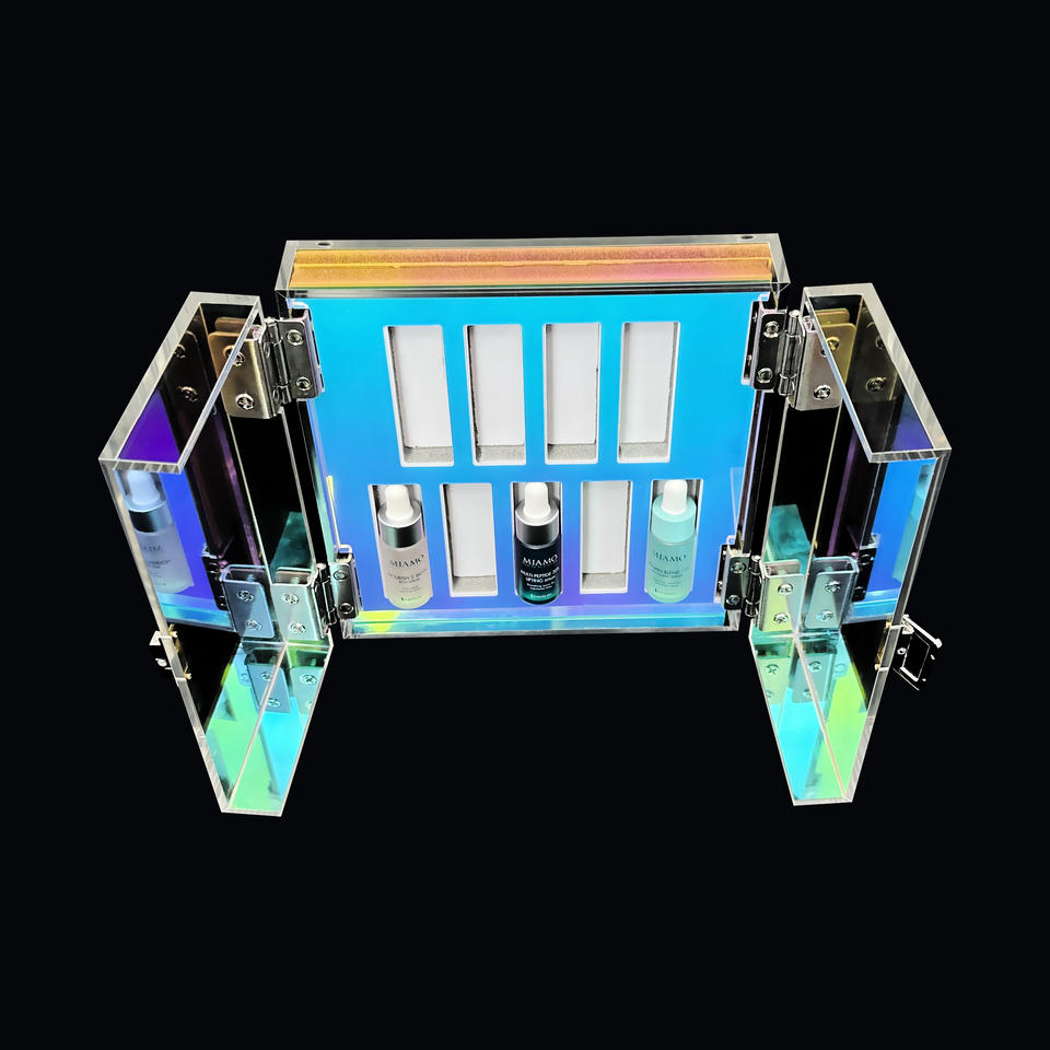 กล่องพลาสติกอะคริลิคเก็บผลิตภัณฑ์ดูแลผิวทำจากพลาสติก Plexiglass สองประตู