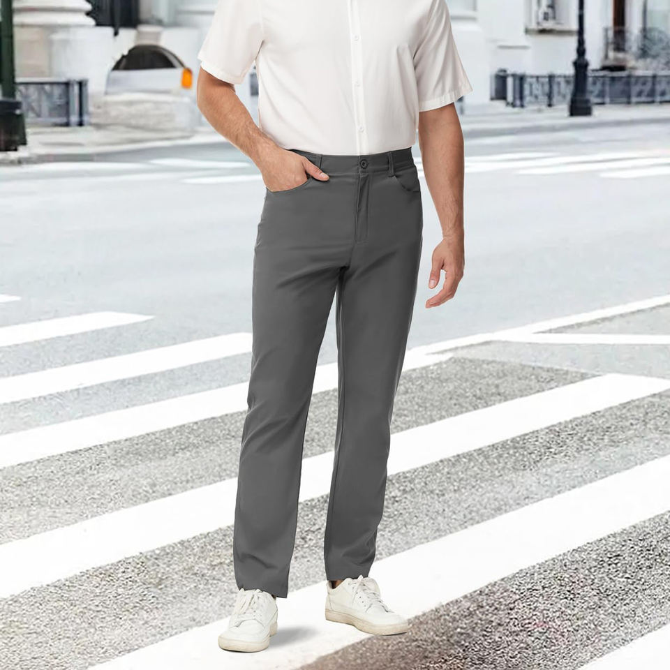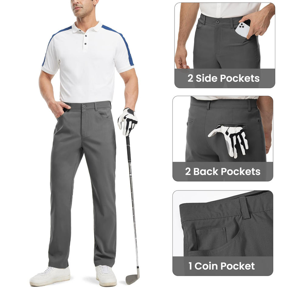 กางเกงกอล์ฟผู้ชายขายดีที่สุด แห้งเร็ว ระบายอากาศได้ดี ผลิตจากโพลีเอสเตอร์ผสมสแปนเด็กซ์ พร้อมซิปและกระดุม