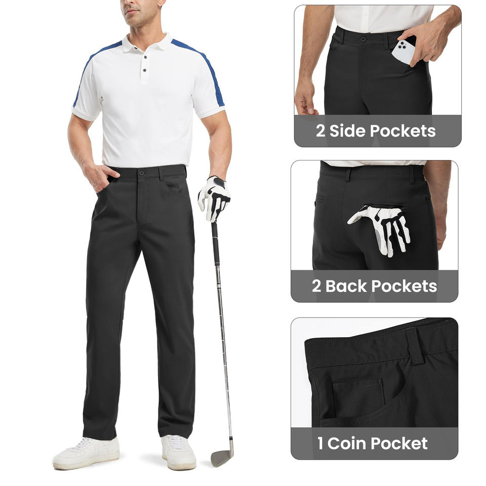 กางเกงกอล์ฟผู้ชายขายดีที่สุด แห้งเร็ว ระบายอากาศได้ดี ผลิตจากโพลีเอสเตอร์ผสมสแปนเด็กซ์ พร้อมซิปและกระดุม