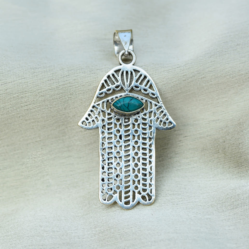 สินค้าขายดี14K จี้รูปแฮมซ่าชุบทองมีเพชรสีเทอร์ควอยซ์สำหรับงานแต่งงานแบบตะวันตก