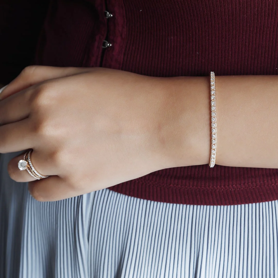 สร้อยข้อมือเทนนิสทอง14K สำหรับผู้หญิงเบาะรองนั่ง3มม. ได้รับการรับรองจาก VVS ห้องปฏิบัติการ