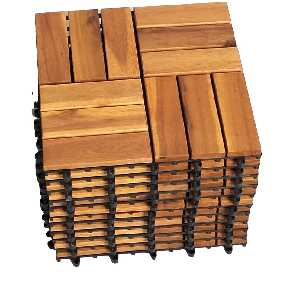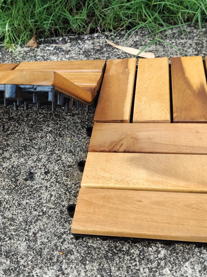 กระเบื้องพื้นไม้สักอะคาเซียทรงสี่เหลี่ยม 300x300 มม. กันน้ำ กันลื่น เป็นมิตรกับสิ่งแวดล้อม ระบบคลิ๊กล็อค สำหรับใช้ภายนอก/ภายใน สวน ระเบียง ลานบ้าน