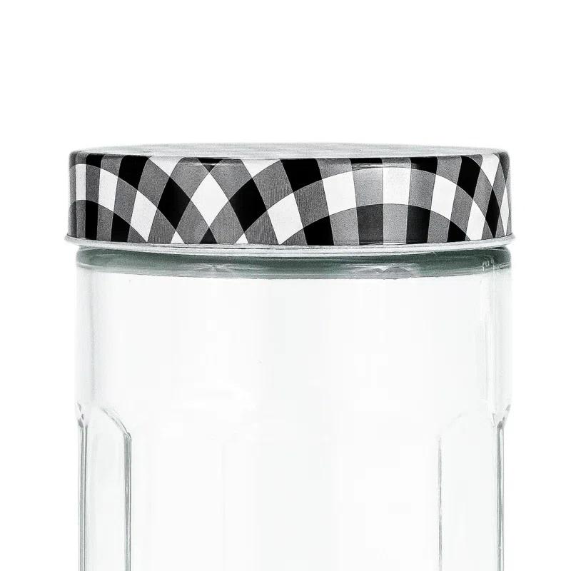 กระปุกแก้วใสลายตารางพร้อมฝาโลหะแบบตอกลาย สำหรับใส่เครื่องเทศ/น้ำตาล ขายดี