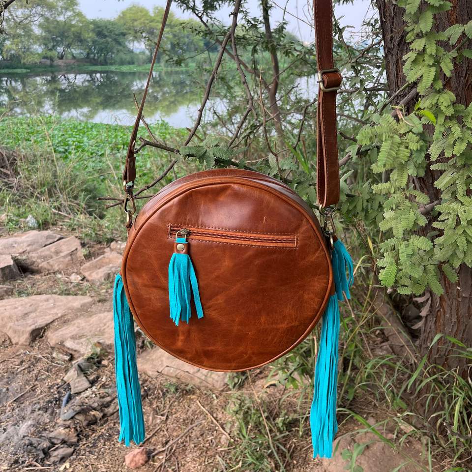 ชื่อผลิตภัณฑ์:กระเป๋าหนังทรงกลมขอบ