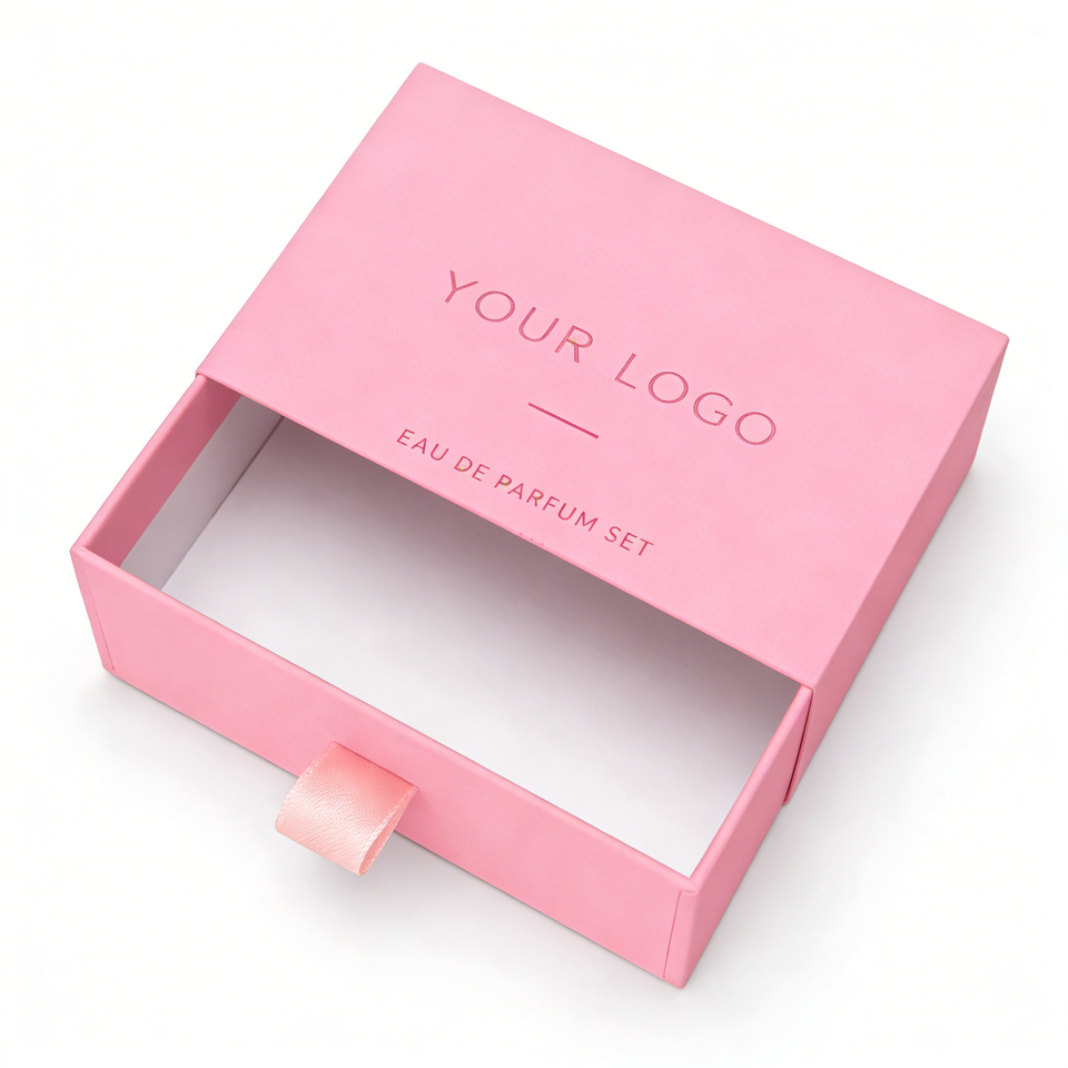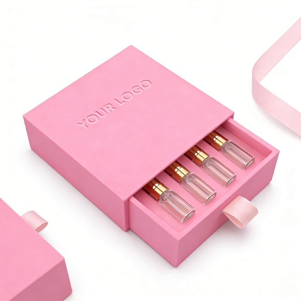 กล่องกระดาษบรรจุภัณฑ์น้ำหอมแบบสไลด์ออกได้ พร้อมริบบิ้น ชุดตัวอย่างน้ำหอม กล่องพิมพ์ลายตามสั่ง โรงงานผลิตแบบ OEM สินค้าขายดี