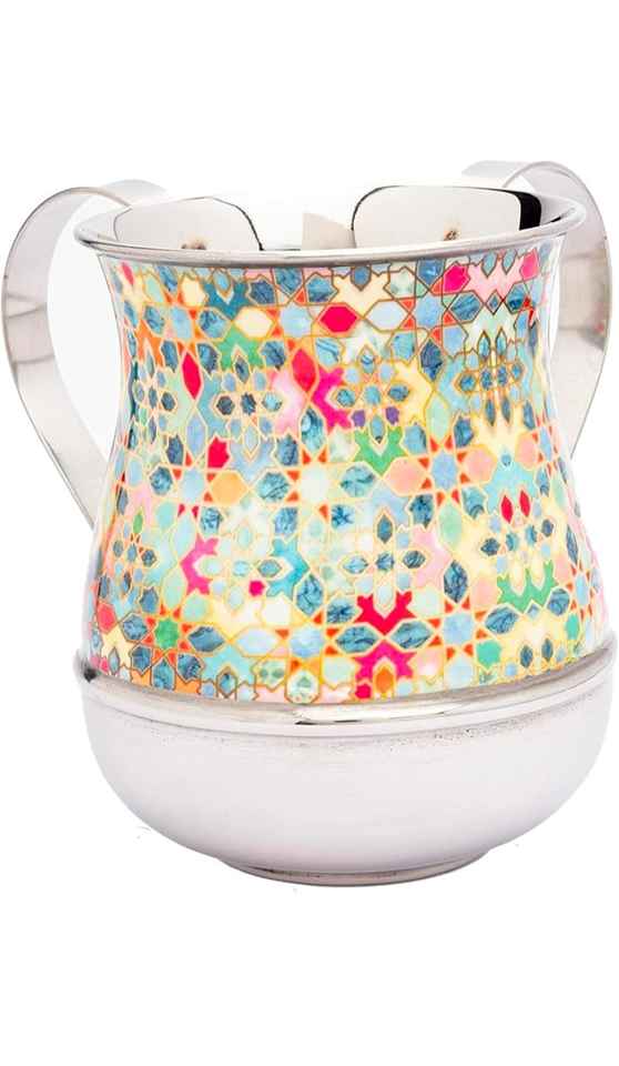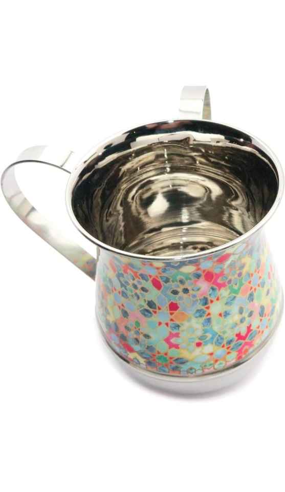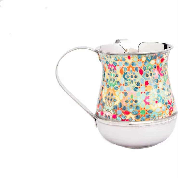 ถ้วยล้างมือสแตนเลสสตีลสีเทาทองลายตกแต่งหรูหราขนาด 5 นิ้ว 40 ออนซ์ แบบกำหนดเองได้ ขายดีที่สุด สำหรับพิธีล้างมือของชาวยิว (Netilat Yadayim)