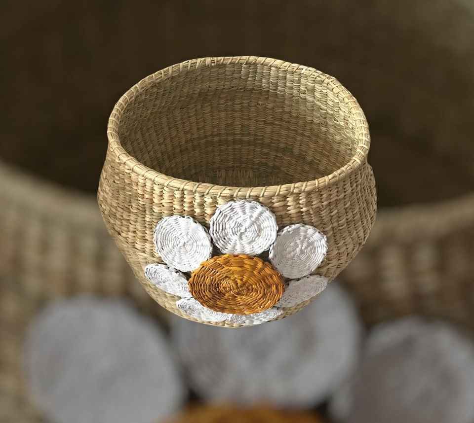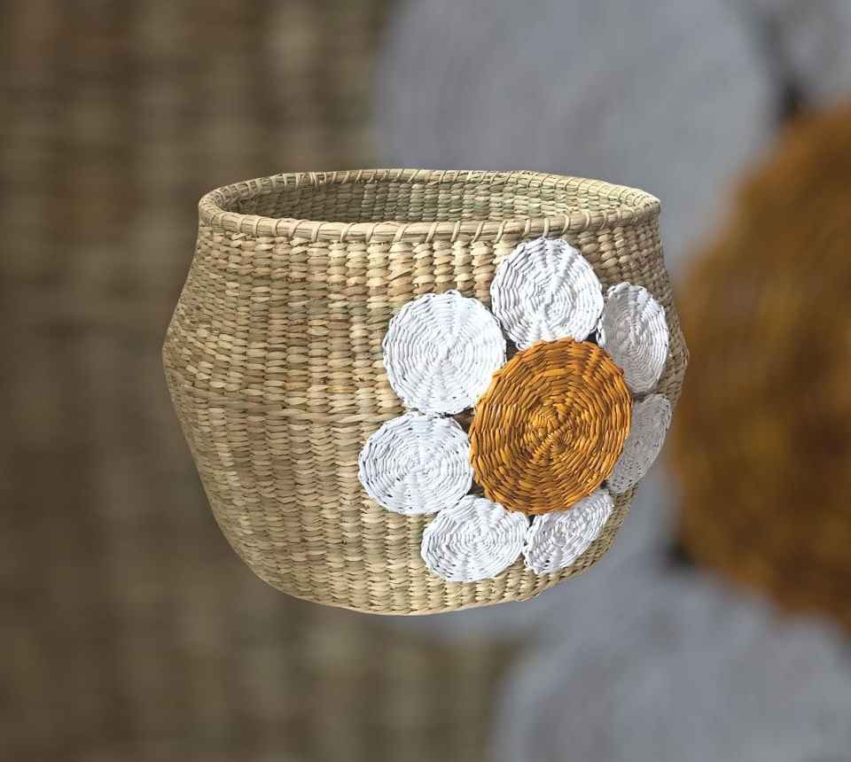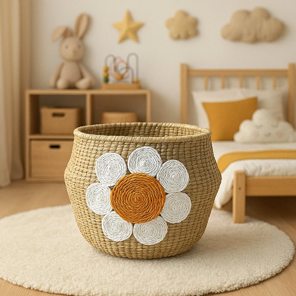 ตะกร้าผักตบชวาทรงกลมดอกเดซี่สำหรับเด็กของเล่นผลิตจากเวียดนาม