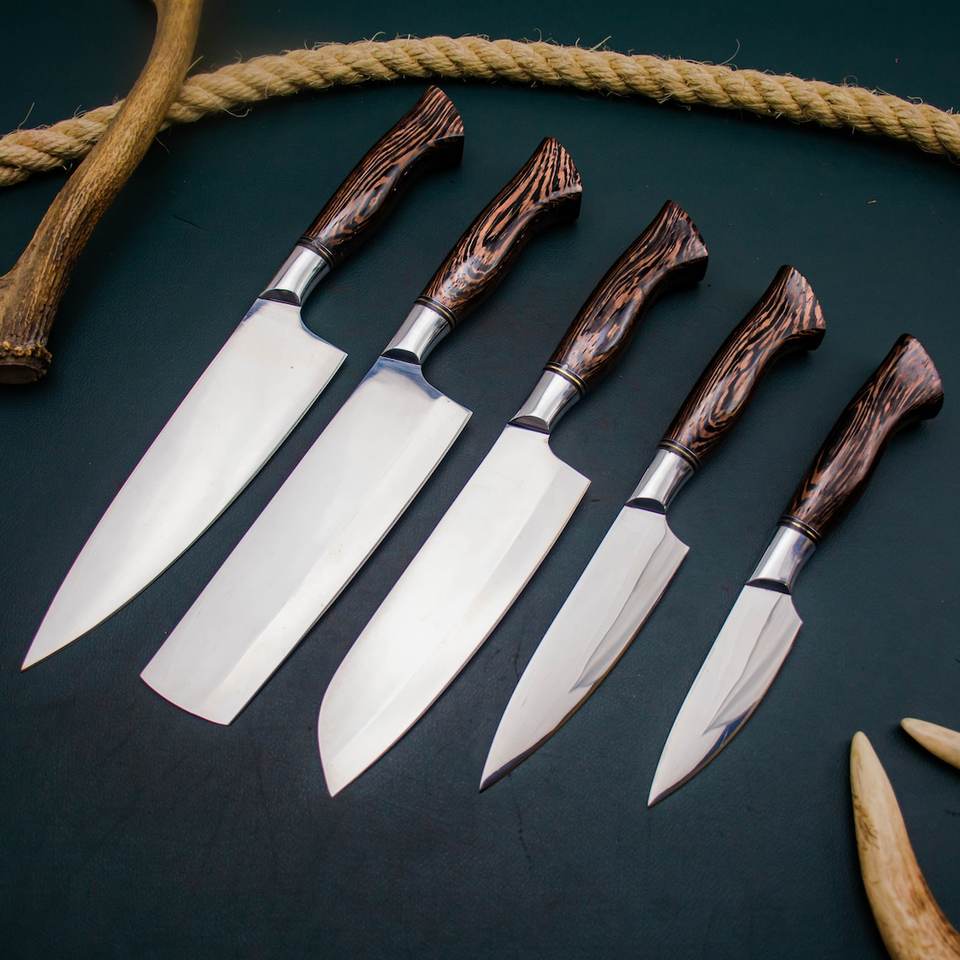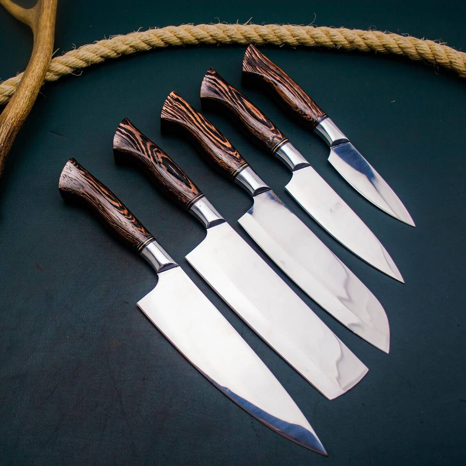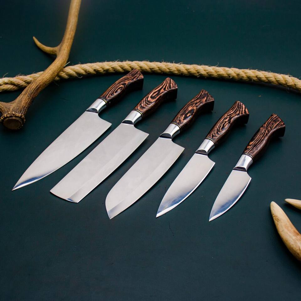 ชุดมีดทำครัวสแตนเลสอเนกประสงค์5ชิ้นทำด้วยมือออนไลน์คุณภาพสูง