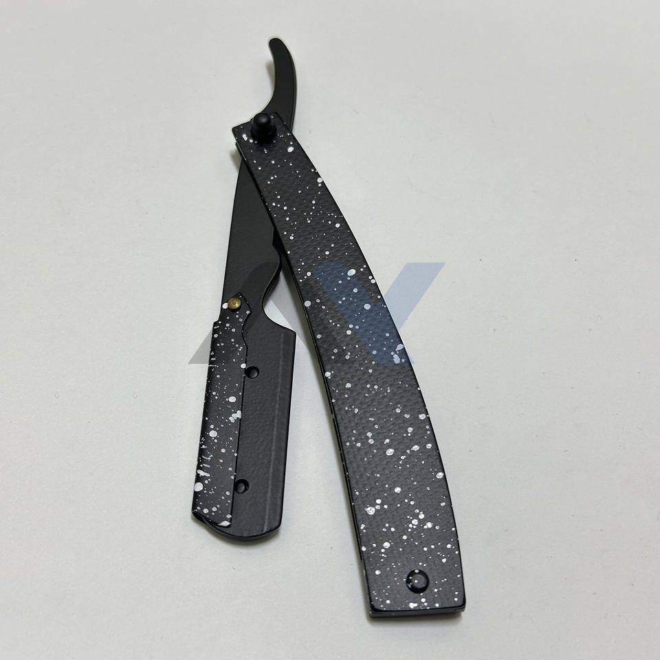 มีดโกนใบตรงสแตนเลสสตีลสีดำล้วน รุ่นขายดี ดีไซน์ลายพื้นผิวสีขาว แบบหยดน้ำ