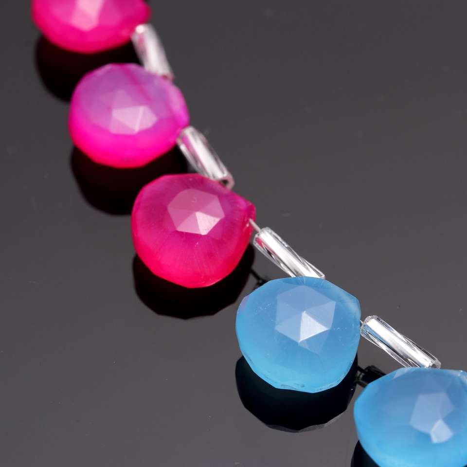 Best Seller Handmade 8-10mm Faceted Natural Chalcedony Bracelet Jewelry Ocean Blue Hot Pink Heart Shape Briolette Stone Beads