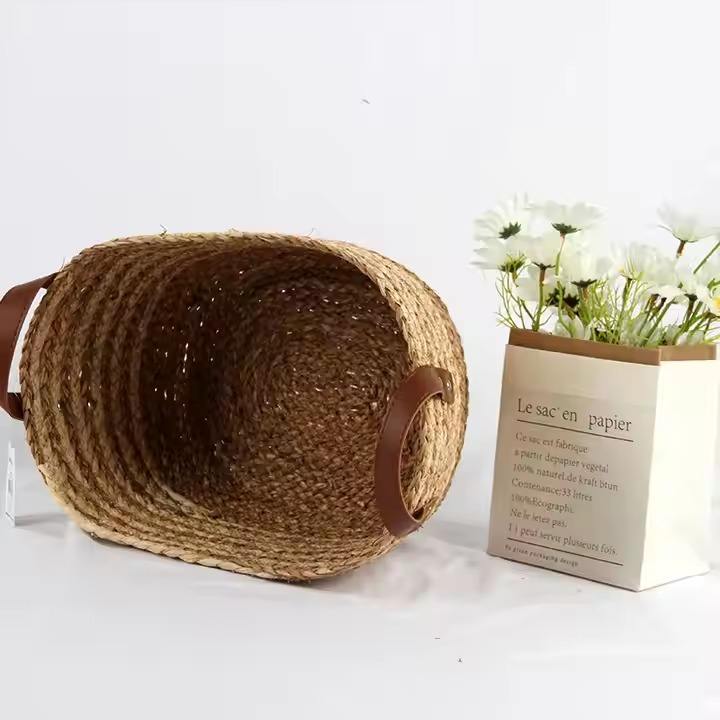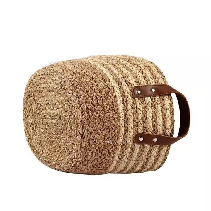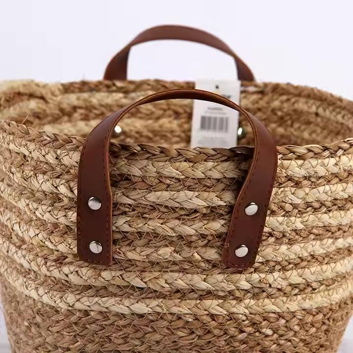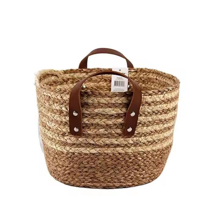 ตะกร้าใส่ของพร้อมที่จับตะกร้าสานมือดีไซน์ยืดหยุ่นได้ผักตบชวาธรรมชาติทำด้วยมือ