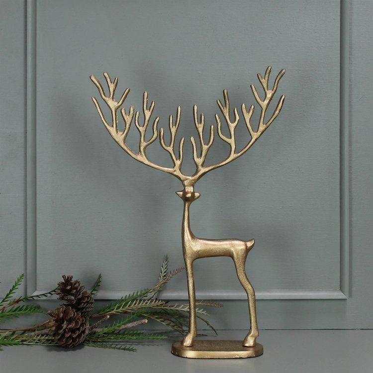 สินค้าขายดี รูปปั้นกวางเรนเดียร์อะลูมิเนียมรุ่นล่าสุด พร้อมเคลือบสีทองเงางาม ของตกแต่งบ้านสำหรับเทศกาลคริสต์มาสช่วงวันหยุด