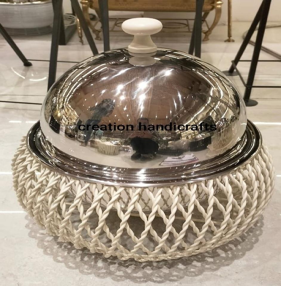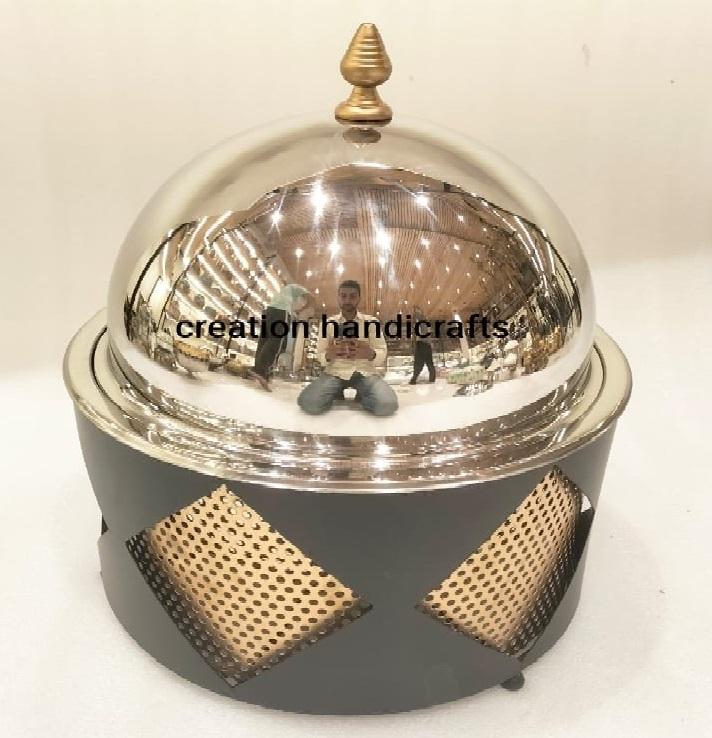 จานอุ่นอาหารสุดหรูสีดำและสีทองพร้อมถาดโลหะเงินสำหรับใช้ในบ้านและโรงแรม