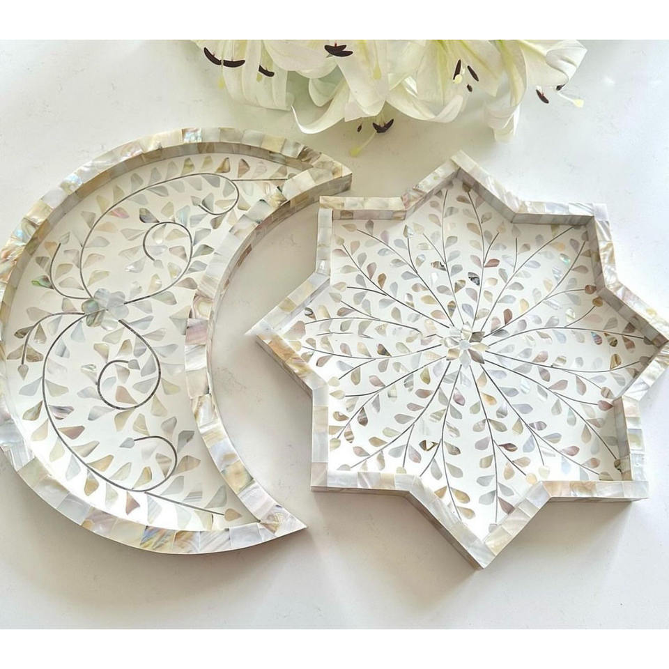Best Seller MOP Crescent Moon Tray Ramadan Mother of Pearl Serving Mirror Accessories Dishes Plates Made by HNH Craft Vietnam