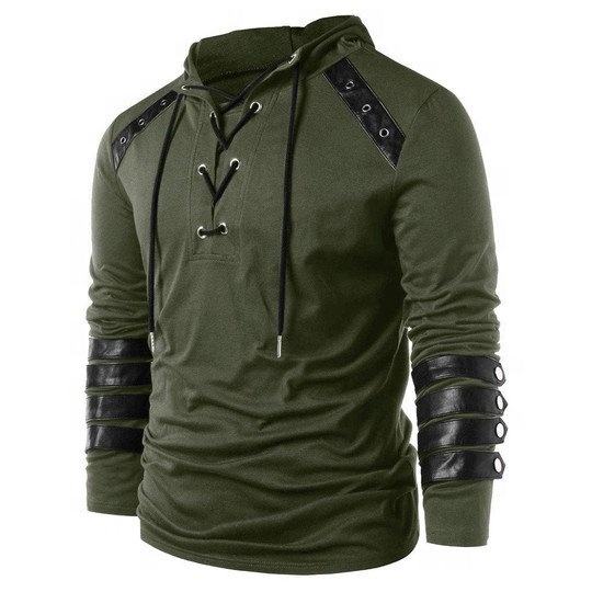 เสื้อฮู้ดผู้ชาย,เสื้อฮู้ดแขนยาวหนังแบบผูกเชือก