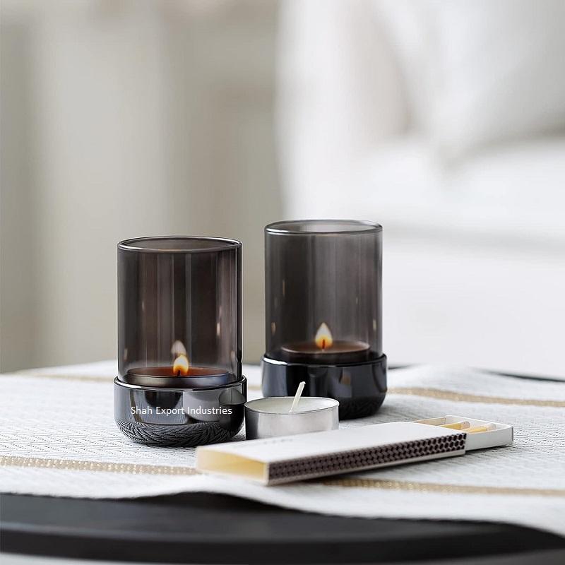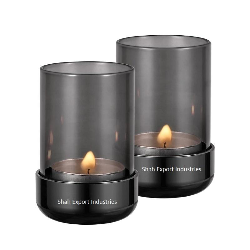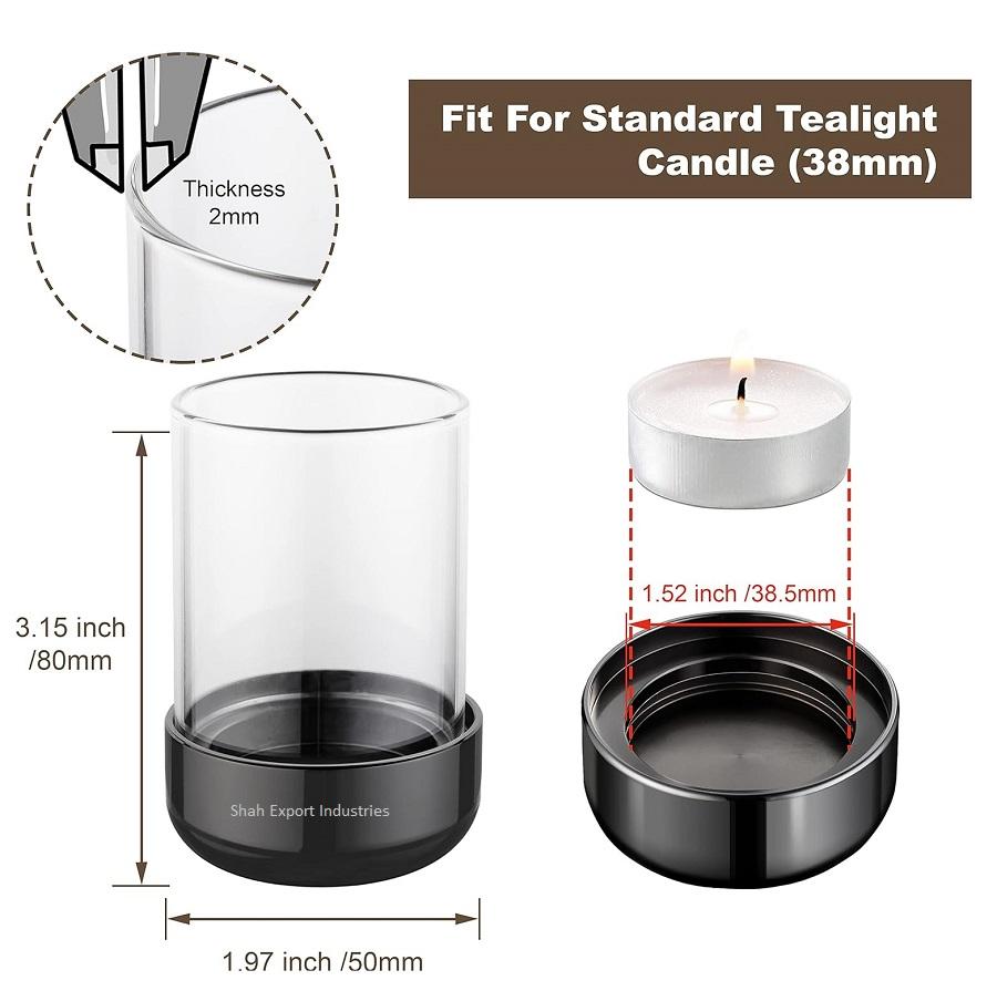 ที่ใส่ชาทำจากโลหะ/แก้วเฮอร์ริเคนสำหรับตกแต่งบ้านและเทศกาลที่วางเทียนทีไลท์สีดำ