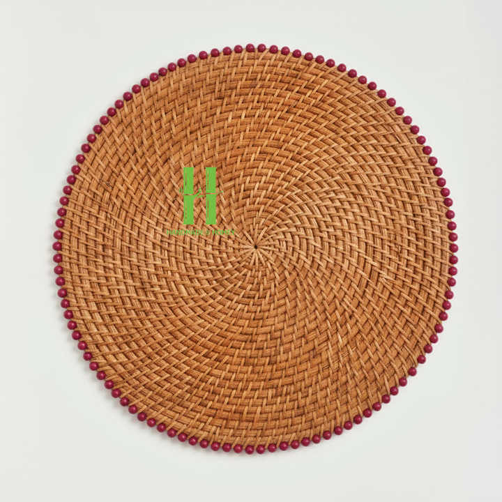 จานรองอาหารหวายธรรมชาติขายดีที่สุด งานแฮนด์เมดสำหรับตกแต่งโต๊ะงานแต่งงาน แผ่นรองจานหวายลายสแกลลอปจากเวียดนาม