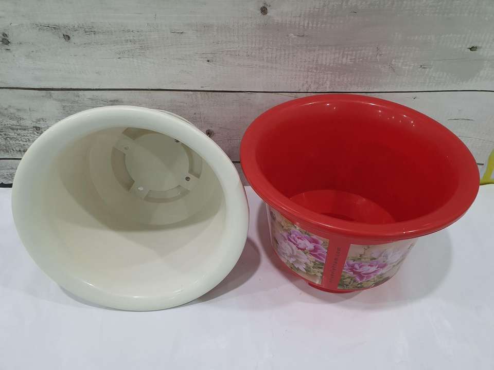 กระถางสำหรับตกแต่งบ้านและสวนกระถางทรงระฆังพร้อมฐานทำจากพลาสติก